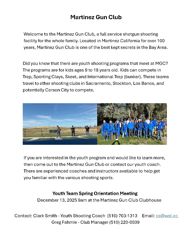 Violators are subject to suspension or dismissal from the Martinez Gun Club